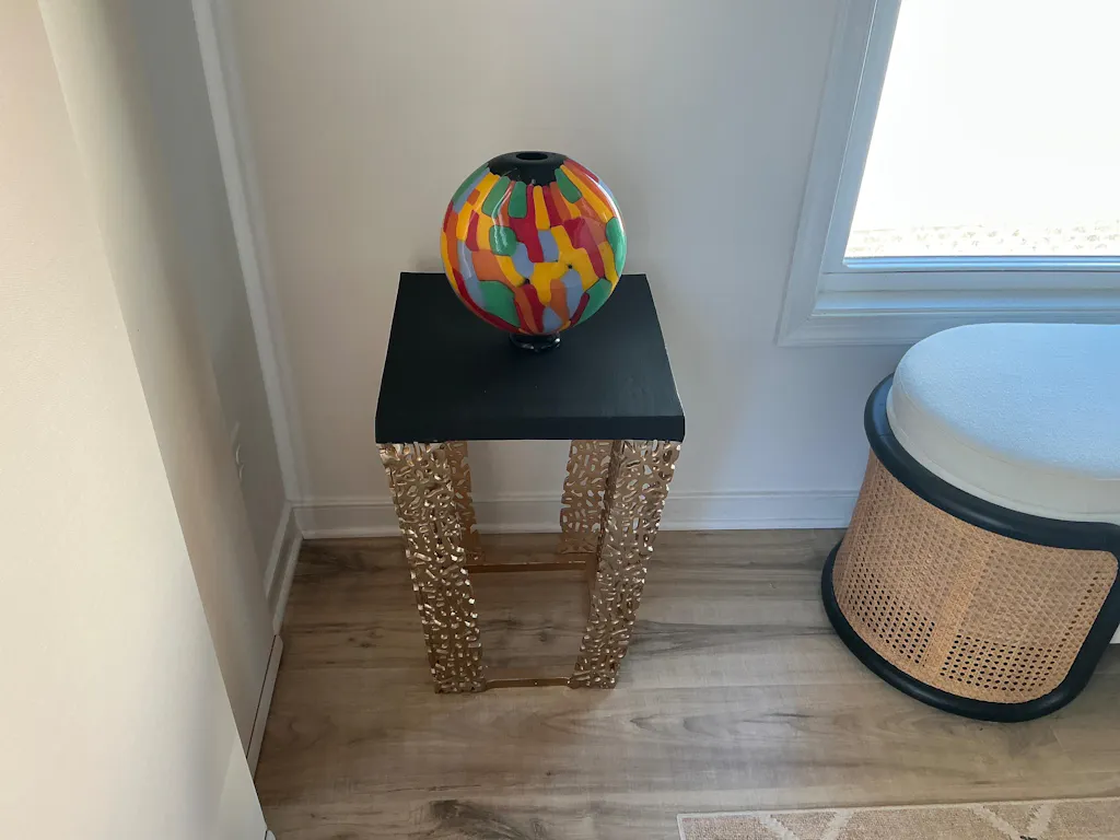 Display your favorite accent pieces with this ornate and eye-catching display stand.